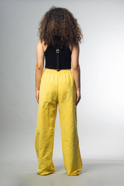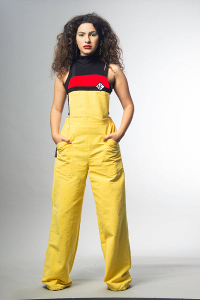100% Cotton - luxurious vintage red cotton velvet, yellow cotton drill (high quality end-of-roll = good for the environment and for your skin) with top quality elastic.